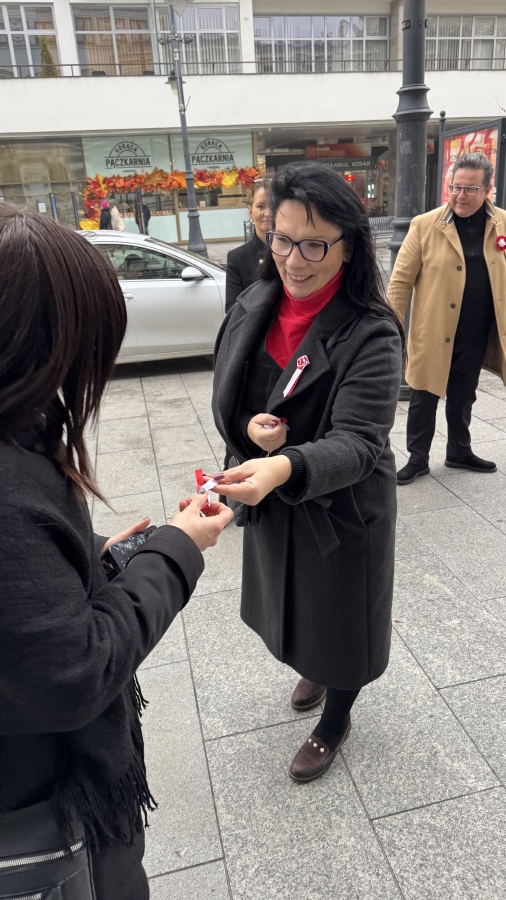 "Szanowni Państwo, jesteśmy dokładnie w przededniu rocznicy odzyskania przez Polskę niepodległości. Bardzo ważne święto, święto wszystkich obywateli, bez względu na to, czy są zwolennikami lewicy, prawicy, święto nas wszystkich. Dlatego dzisiaj z okazji tego święta będziemy rozdawać mieszkańcom Łodzi kotyliony, żeby jutro dumnie ten kotylion przyczepili sobie do kurtki, do marynarki, do swetra i dumnie pokazywali, że Polska jest niepodległym krajem". - mówił Tomasz Trela, Poseł Na Sejm RP.